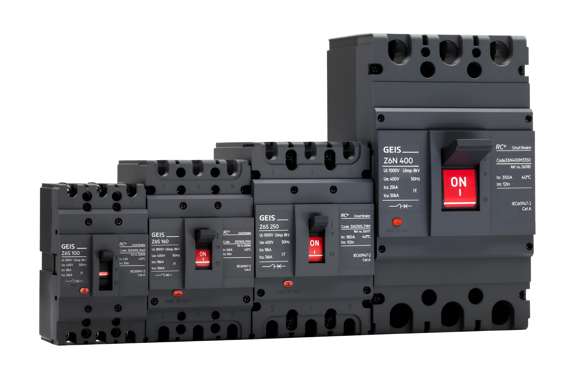 Circuit breakers comply with IEC 60947-2, GB 14048.2